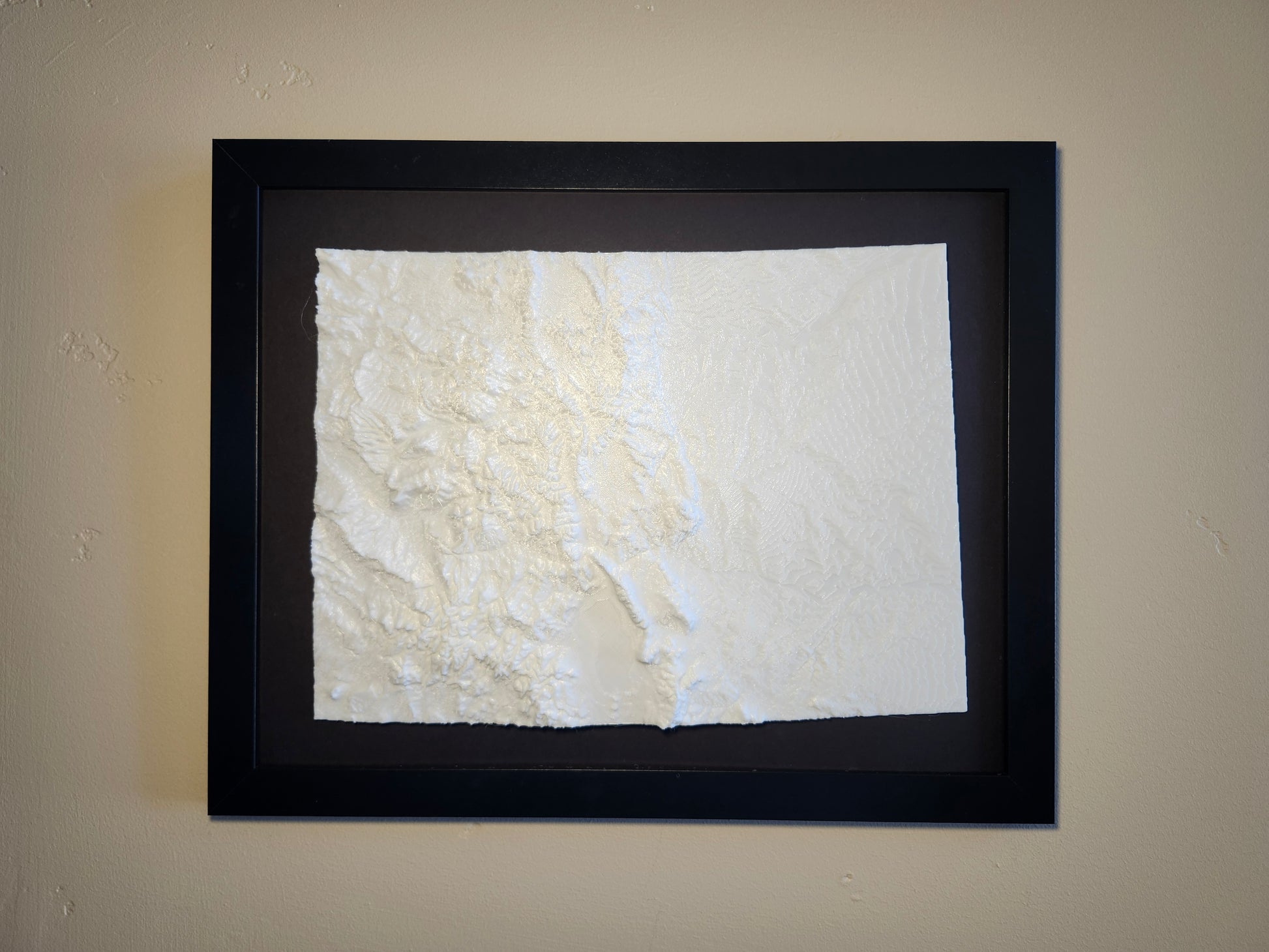 11.5"x8.5"x0.5" 3D printed map of the State of Colorado (Stand/frame not included)