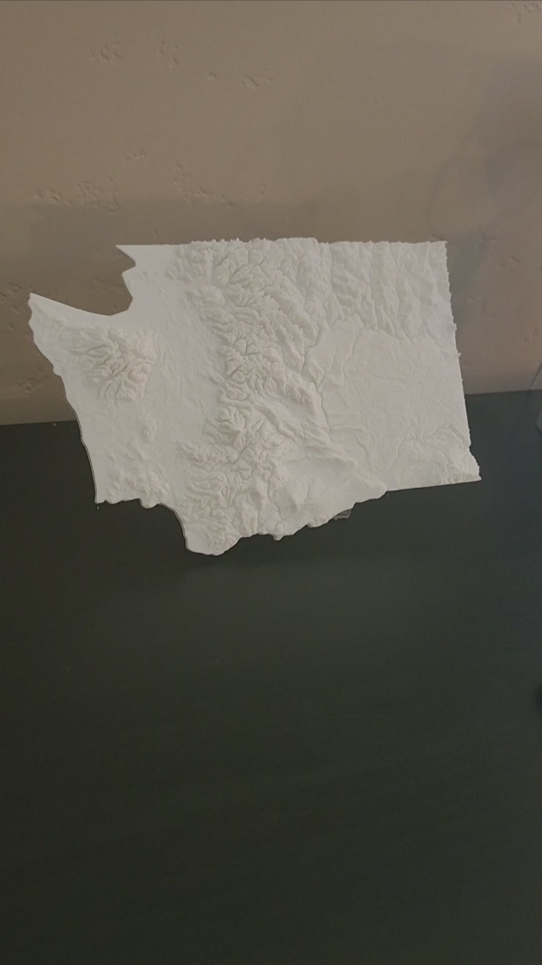 8.5"x6"x0.5" 3D printed map of the State of Washington (Stand/frame not included)